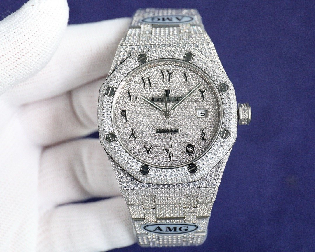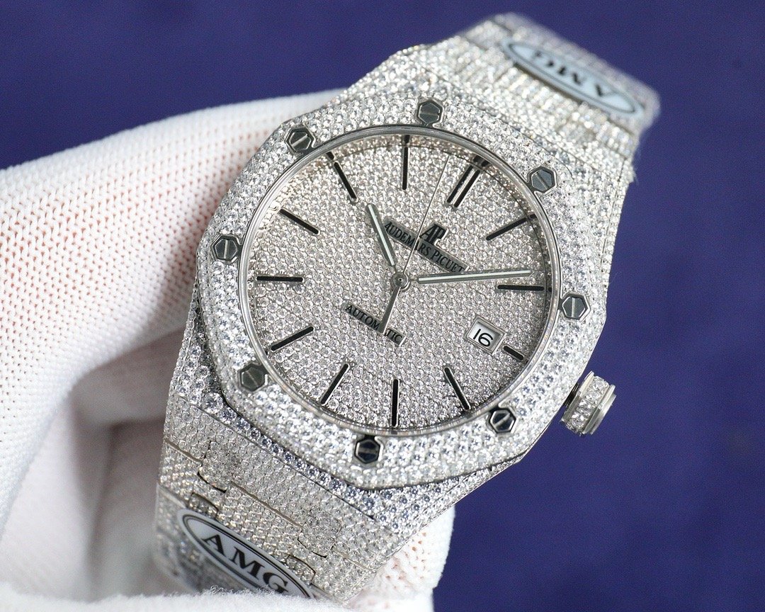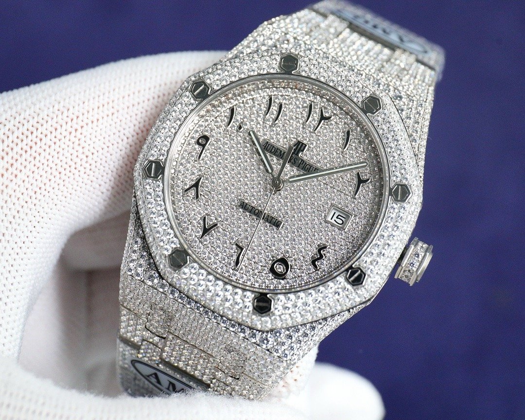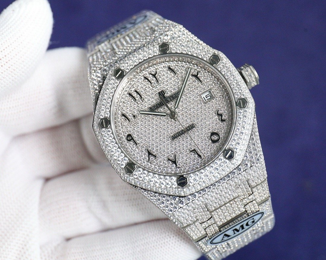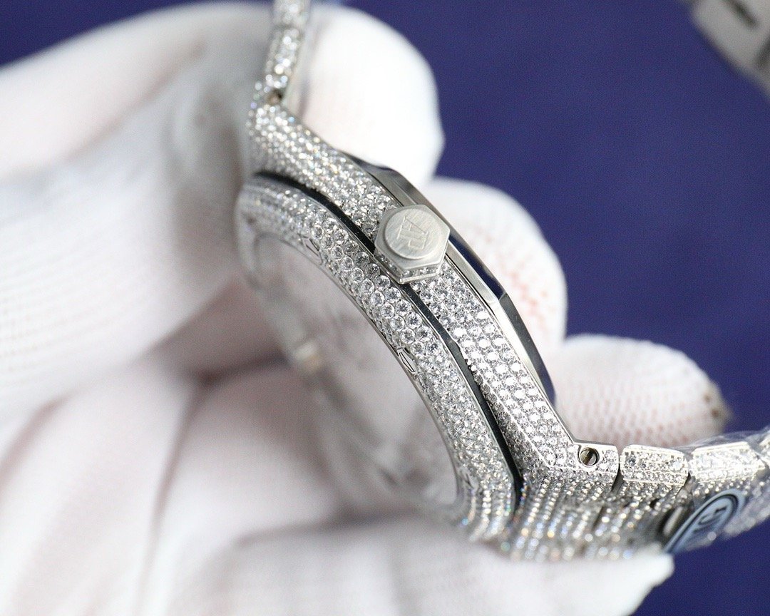 1. The entire watch is densely encrusted with the finest Swarovski diamonds, including the sides of the steel band.