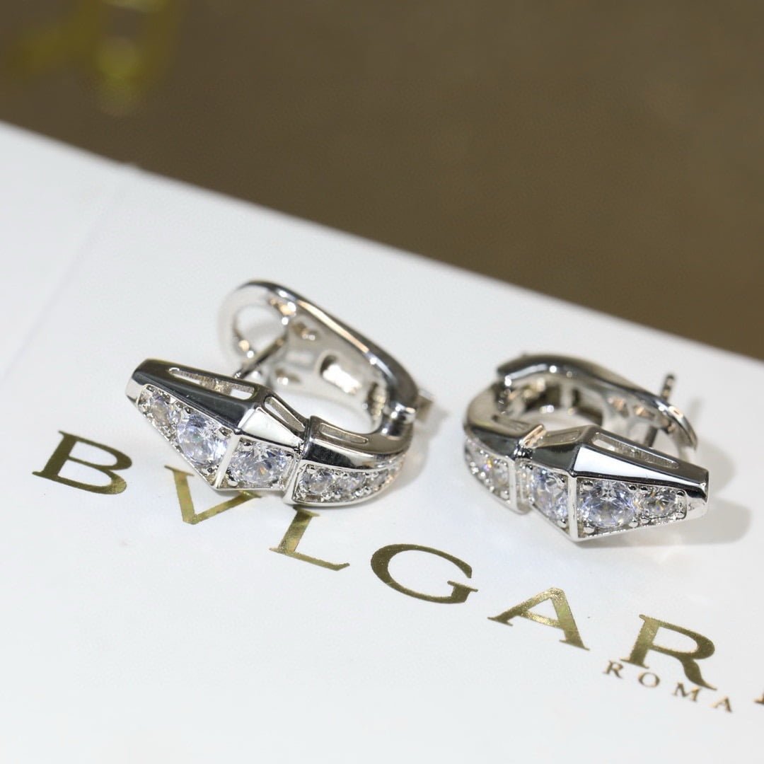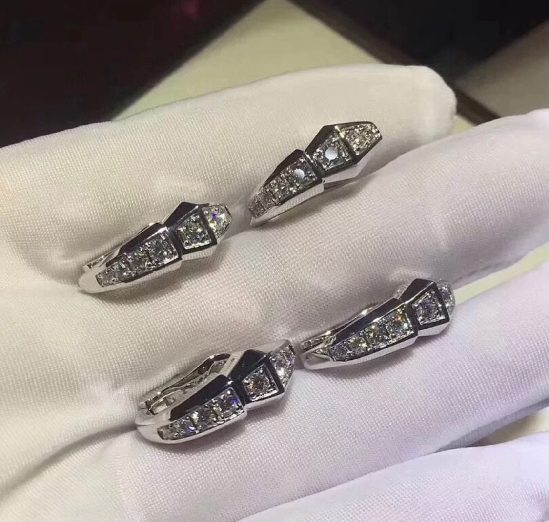 Bulgari, snake, full diamond earrings, fine craftsmanship, S925 sterling silver, flying saucer earplugs, original logo, platinum, rose gold.