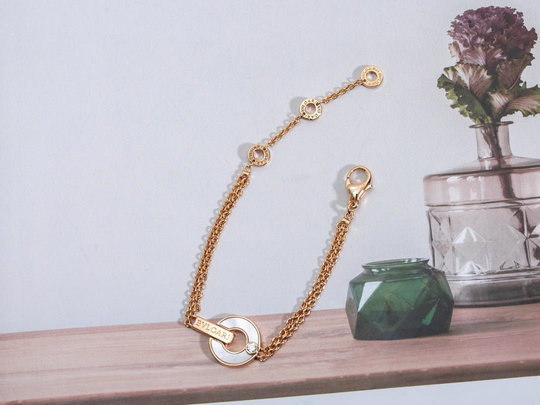 Bulgari, disc bracelet, new style, mother-of-pearl inlaid with diamonds, mother-of-pearl inlaid with a rhinestone, rose gold bracelet, simple and stylish.