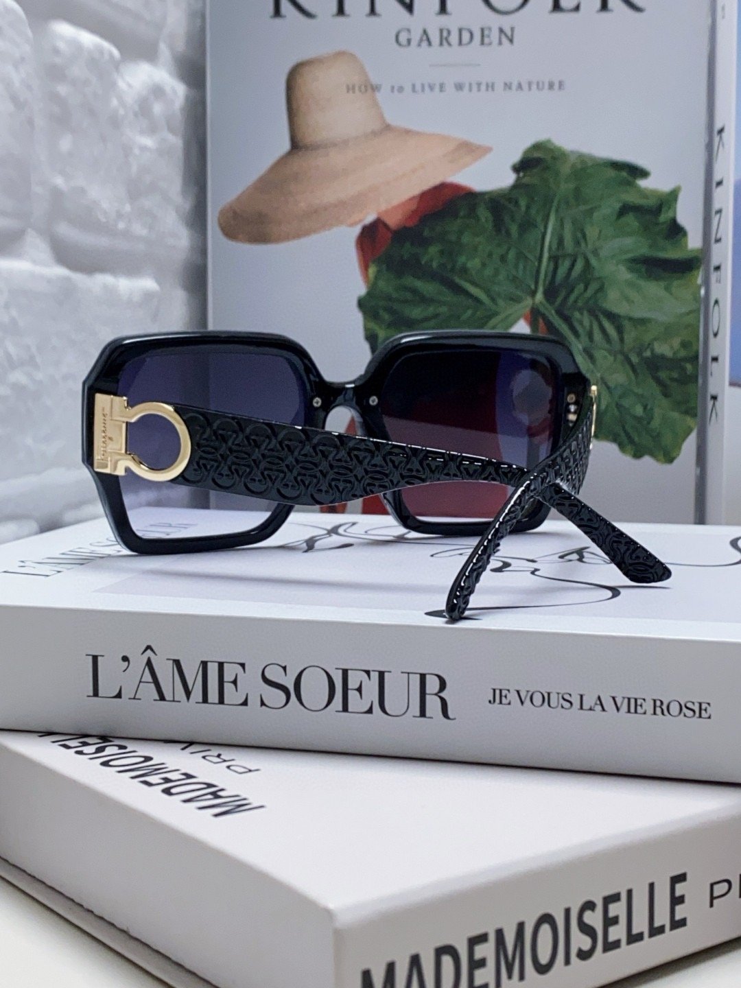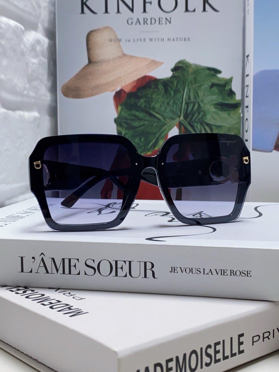 Ferragamo,Black,Metal Logo,Unisex,Sunglasses.