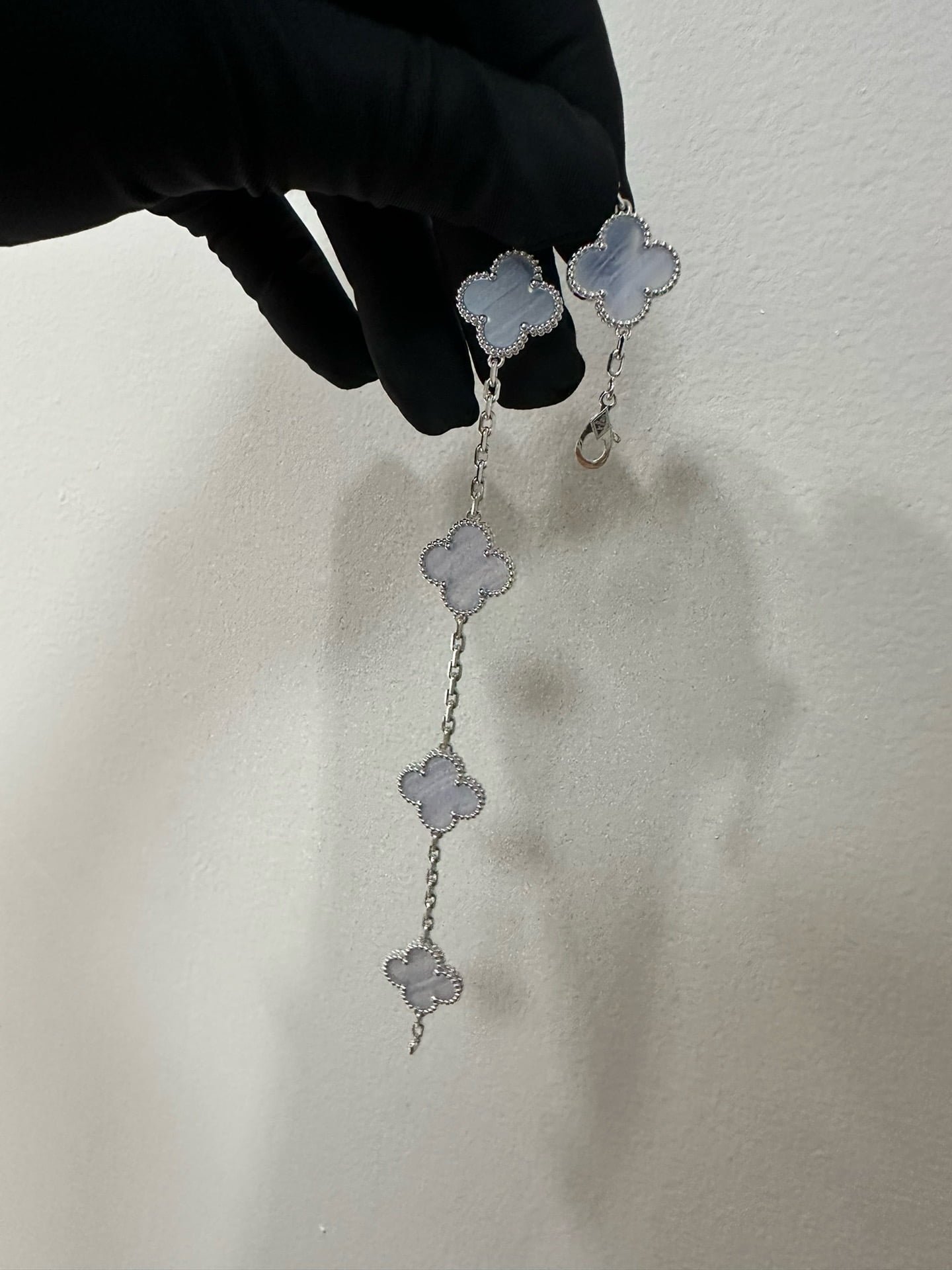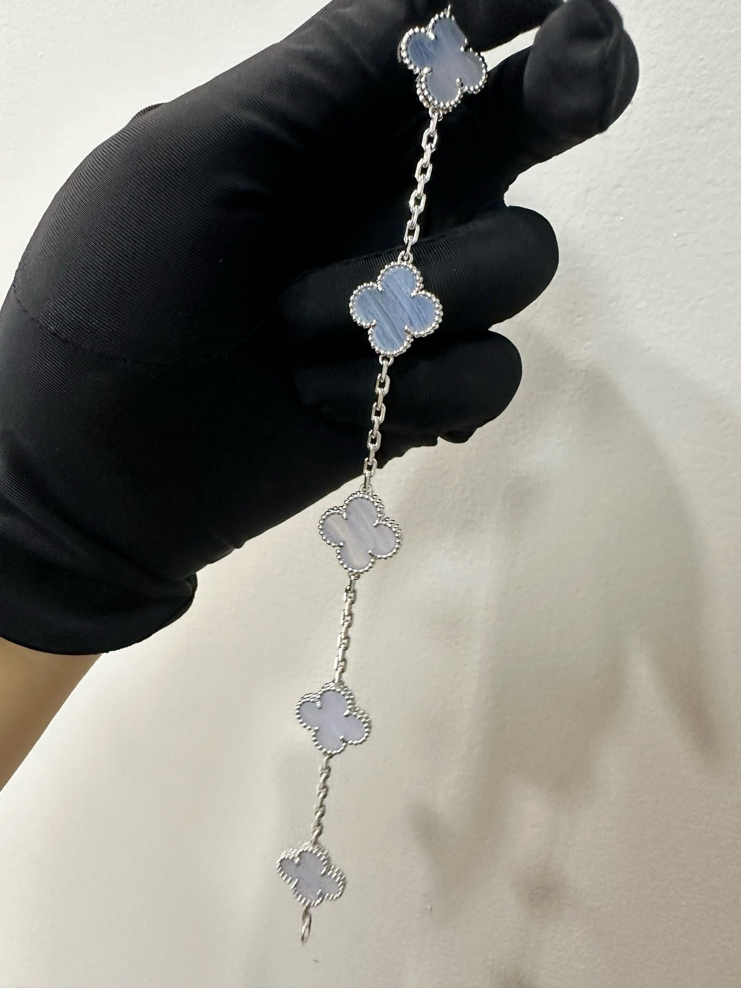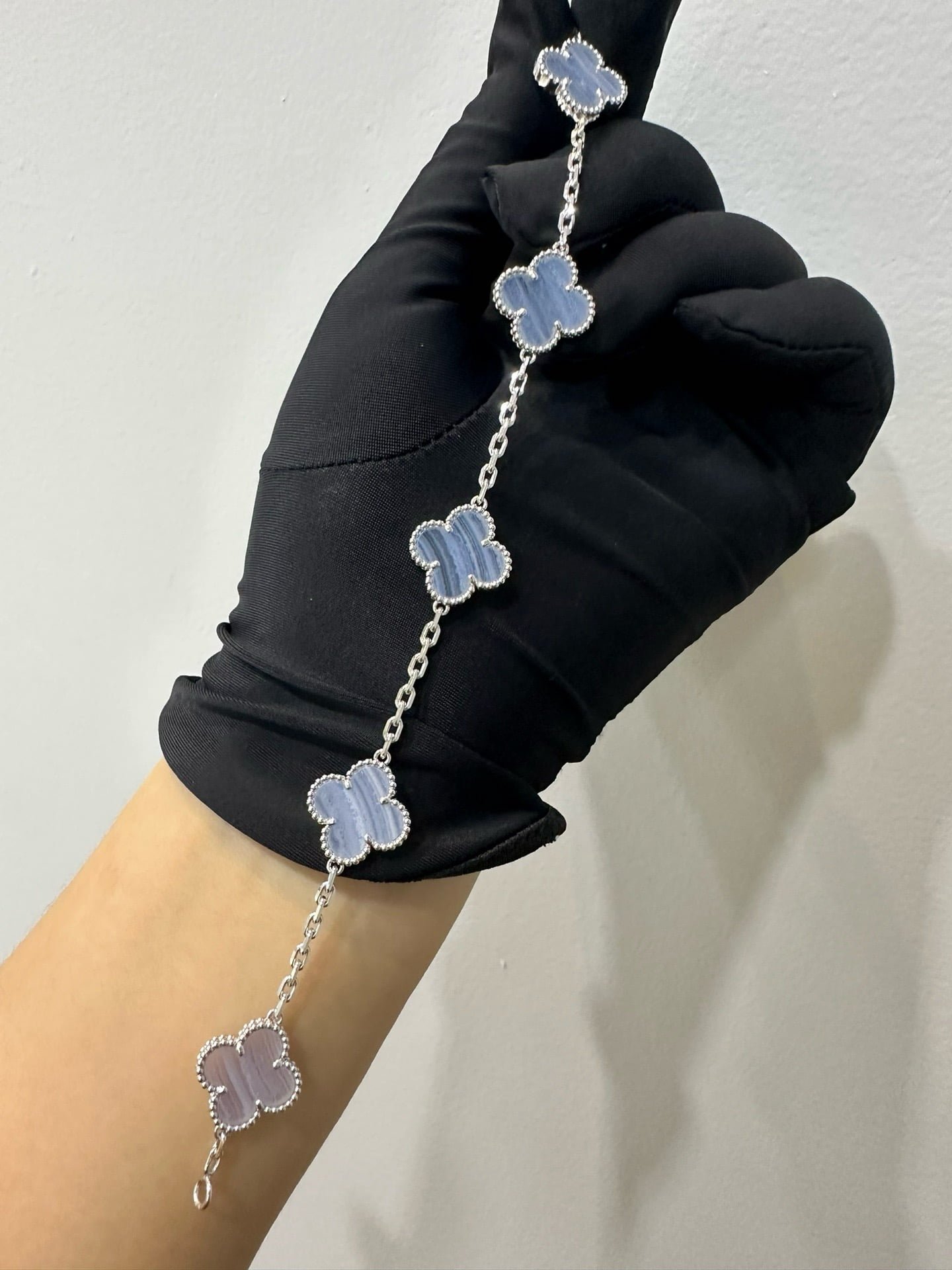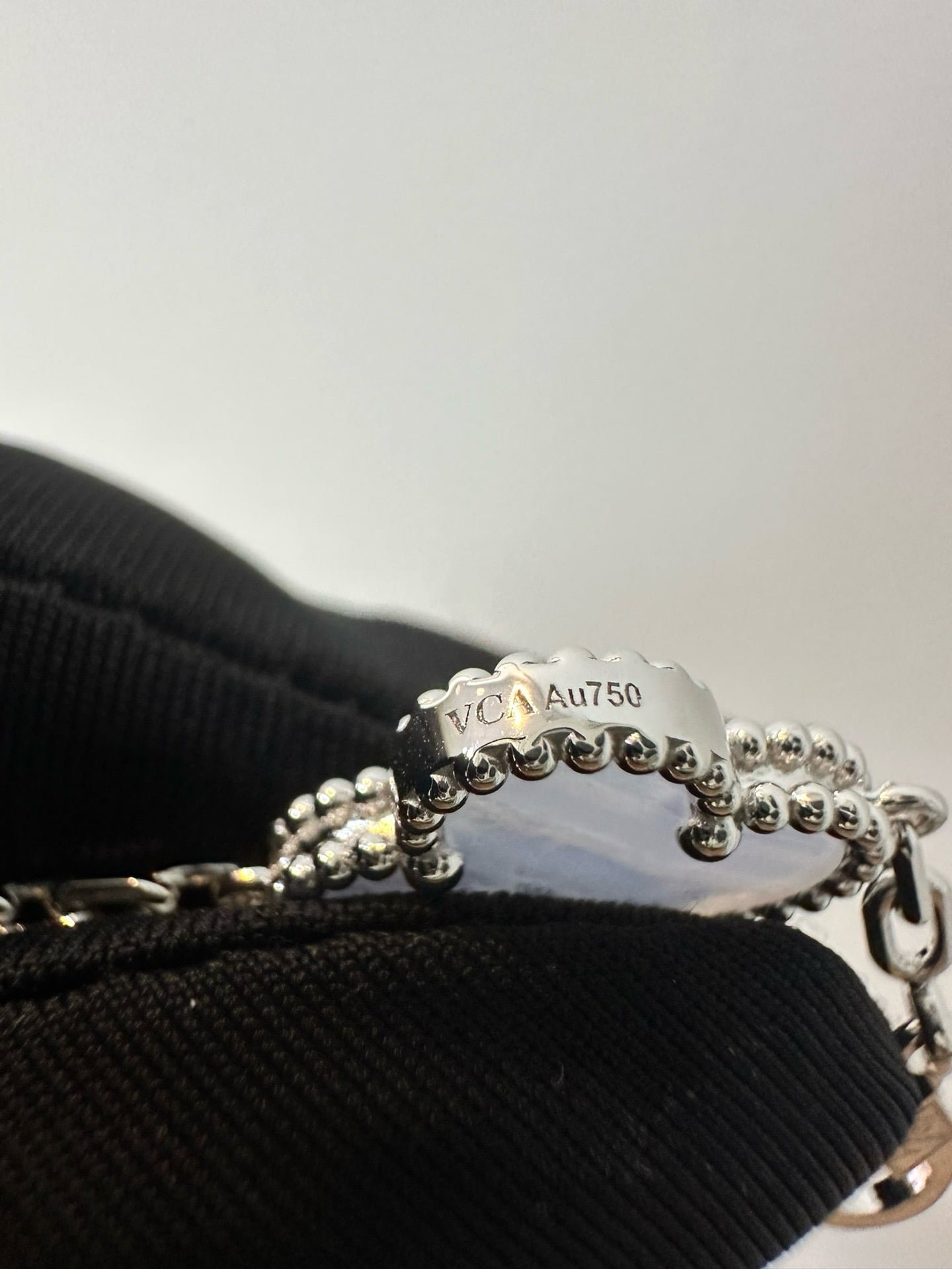 Vintage Alhambra bracelet, 5 motifs, rhodium plated 18K white gold, chalcedony.